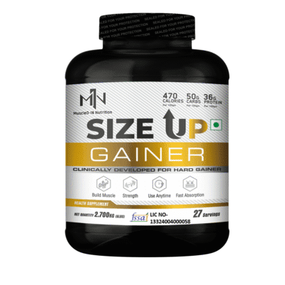MuscleD-IN Size Up Gainer – High-calorie, high-protein formula for building muscle mass, improving strength, and supporting fast recovery.
